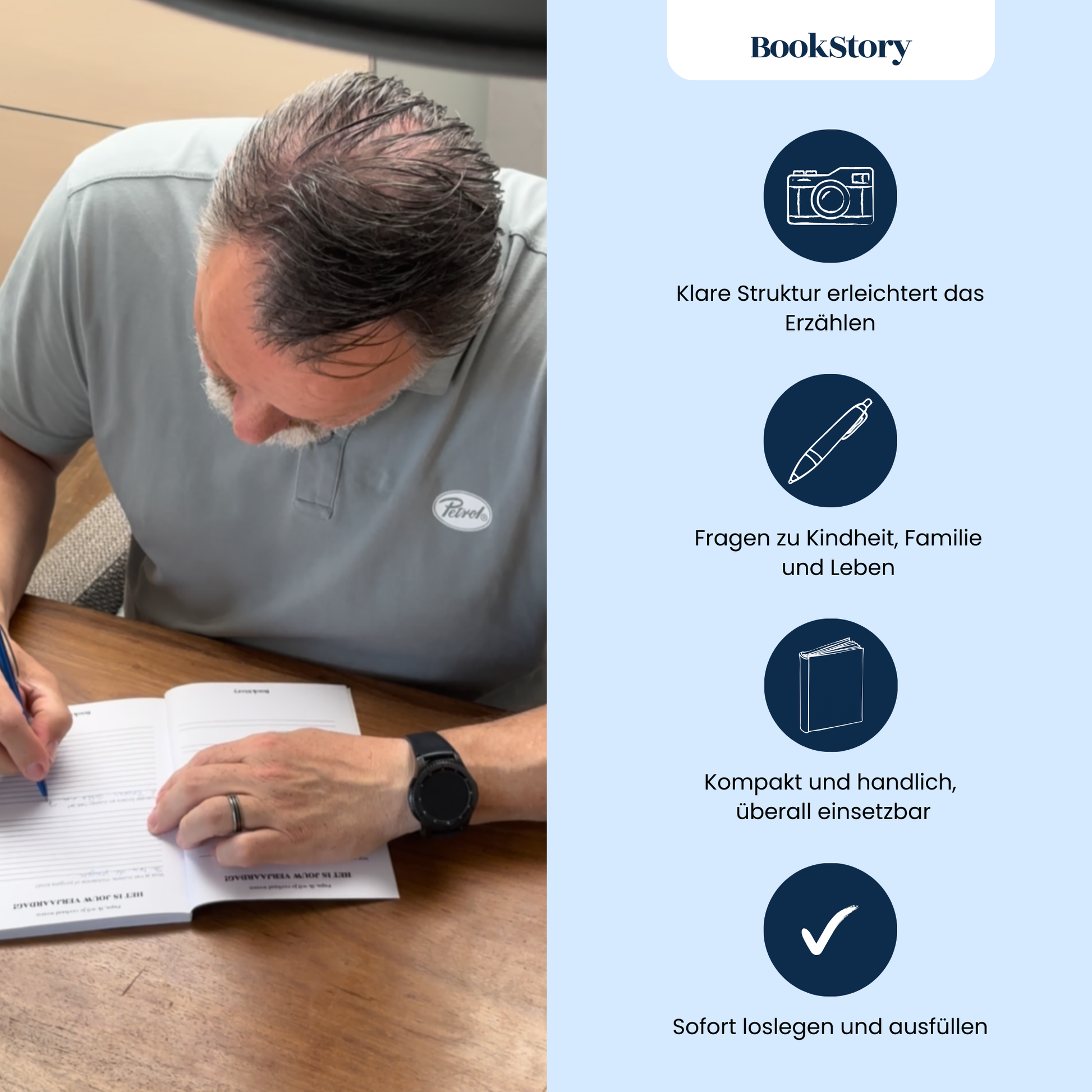 Ein wunderschön gestaltetes Ausfüllbuch mit mehr als 260 Fragen, sorgfältig zusammengestellt, um Geschichten, Erinnerungen und Anekdoten hervorzuholen, die sonst vielleicht verloren gehen würden.